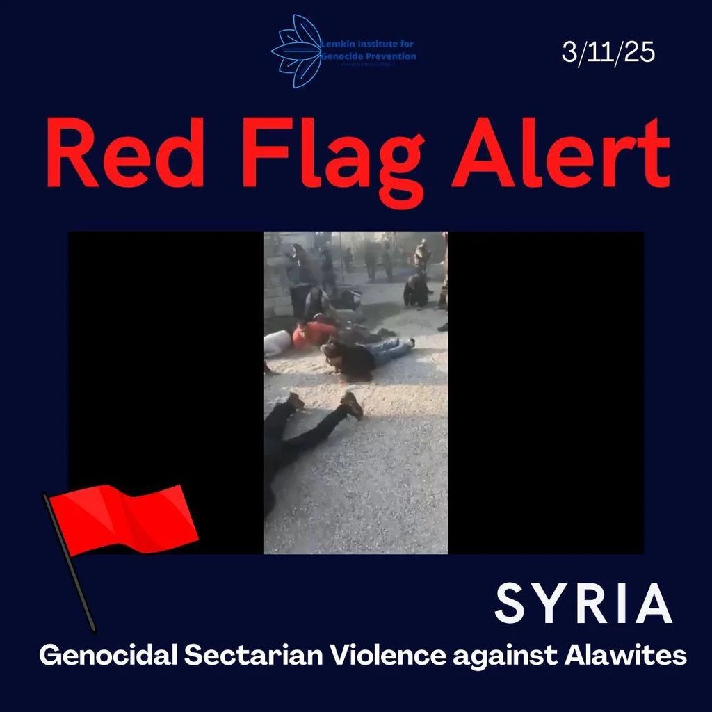 Das Institut gibt eine dringende Rote-Flagge-Warnung für Syrien heraus, da die kritische Gefahr eines Všlkermords an Syrern der alawitischen Sekte in der Küstenregion Syriens besteht. Seitdem sind zahlreiche Videos und Berichte über die Hinrichtung Dutzender unbewaffneter Zivilisten, darunter Frauen, Kinder, ältere Menschen und Säuglinge, durch Kämpfer der neu gegrŸndeten Allgemeinen Sicherheitsbehšrde der syrischen Übergangsregierung und bewaffneter Gruppen, die mit der offiziell aufgelisten militanten Gruppe Hay’at Tahrir al-Sham (HTS) und der Syrischen Nationalarmee (SNA) in Verbindung stehen, aufgetaucht.