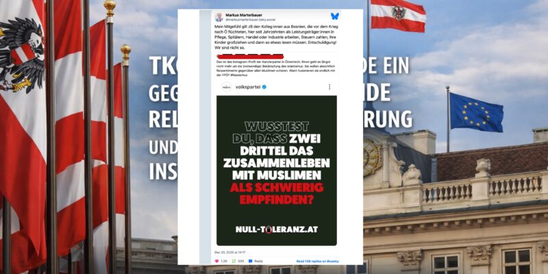 Seit über dreißig Jahren weist die TKG in Wien auf Risiken jeder Form politischer Instrumentalisierung von Religion hin – einschließlich des sogenannten „Politischen Islam“ – und zwar unabhängig von religiöser Zugehörigkeit. Eine pauschale Zuschreibung auf Basis religiöser Identität, wie sie hier methodisch vorbereitet und politisch weiterverwertet wird, ist jedoch wissenschaftlich nicht haltbar und gesellschaftlich hochproblematisch.