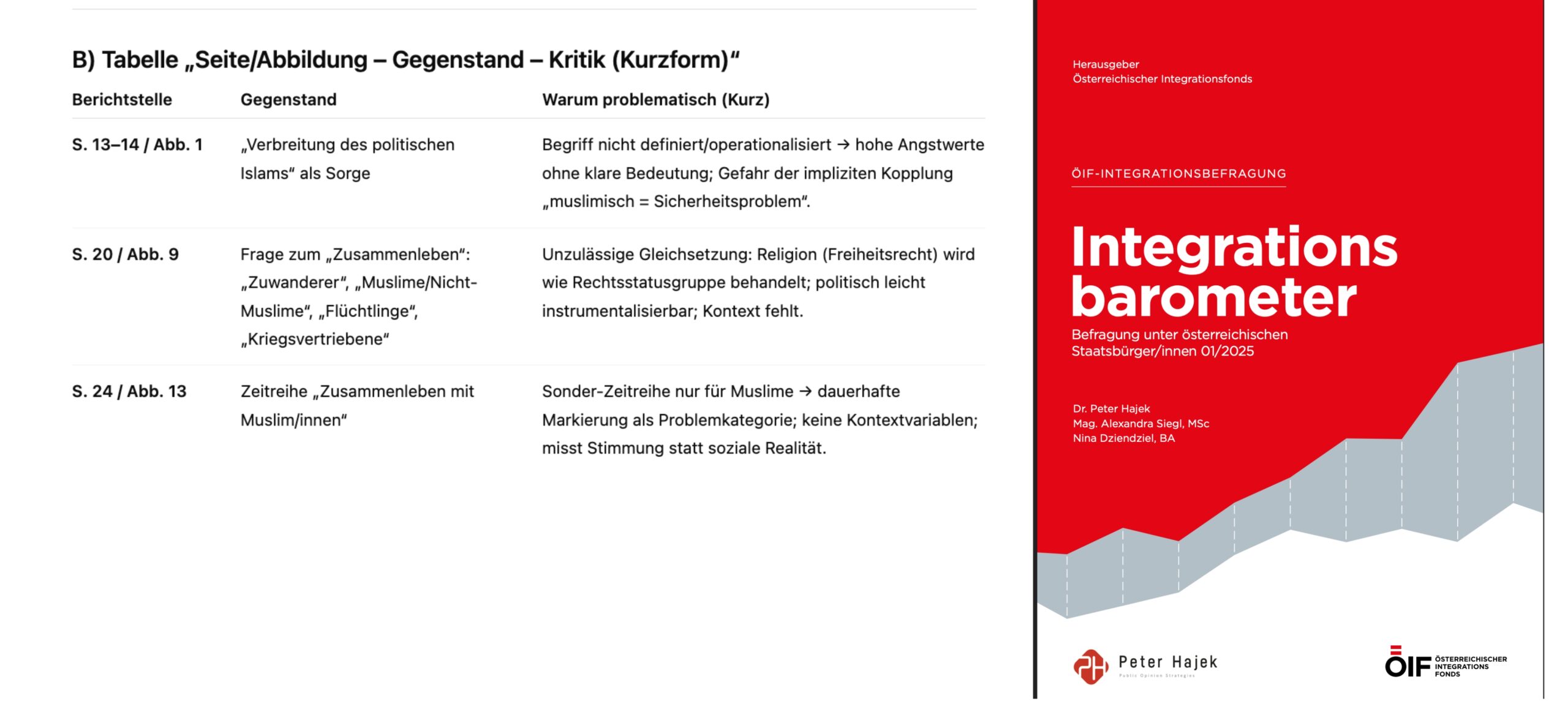 Methodische, konzeptionelle und berufsständisch relevante Defizite in der Erstellung, Durchführung, Darstellung und gesellschaftlichen Wirkung des Integrationsbarometers 2025 des Österreichischen Integrationsfonds (ÖIF).
