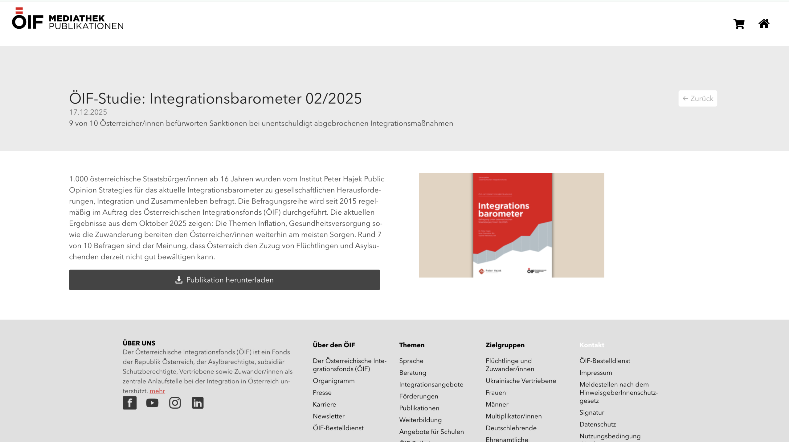 Zusammenstellung der Türkischen Kulturgemeinde in Österreich (TKG), Stand: 28.04.2026 Grundlage: Integrationsbarometer 02/2025, Fassung vom 26.04.2026 (48 Seiten), Herausgeber: Österreichischer Integrationsfonds (ÖIF), Autor: Peter Hajek Public Opinion Strategies GmbH