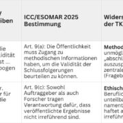 Nach Auffassung der TKG verstößt die nicht gekennzeichnete Ersetzung der ersten Fassung gegen mehrere Bestimmungen des ICC/ESOMAR International Code 2025: